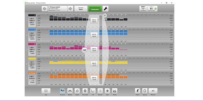 MeasureColor Production可以與MeasureColor Reports配套使用來采集、分析和可視化印刷質量數據。這種可視化可以揭示不同生產批次的質量和一致性,而不僅限于提供數據。自動化數據傳輸和定制化報告可為不同用戶提供可操作的深刻見解,而與傳感器和MIS系統的無縫集成則可確保更高效地做出明智決策。